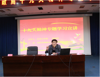 近日,市财政局召开学习贯彻党的十九大精神专题宣讲报告会。河南省青年理论宣讲专家、省委讲师团成员、市委宣传部纪检组长杨林防同志应邀为全局党员干部做了题为《新时代的政治宣言和行动纲领》的十九大精神宣讲和专题辅导。